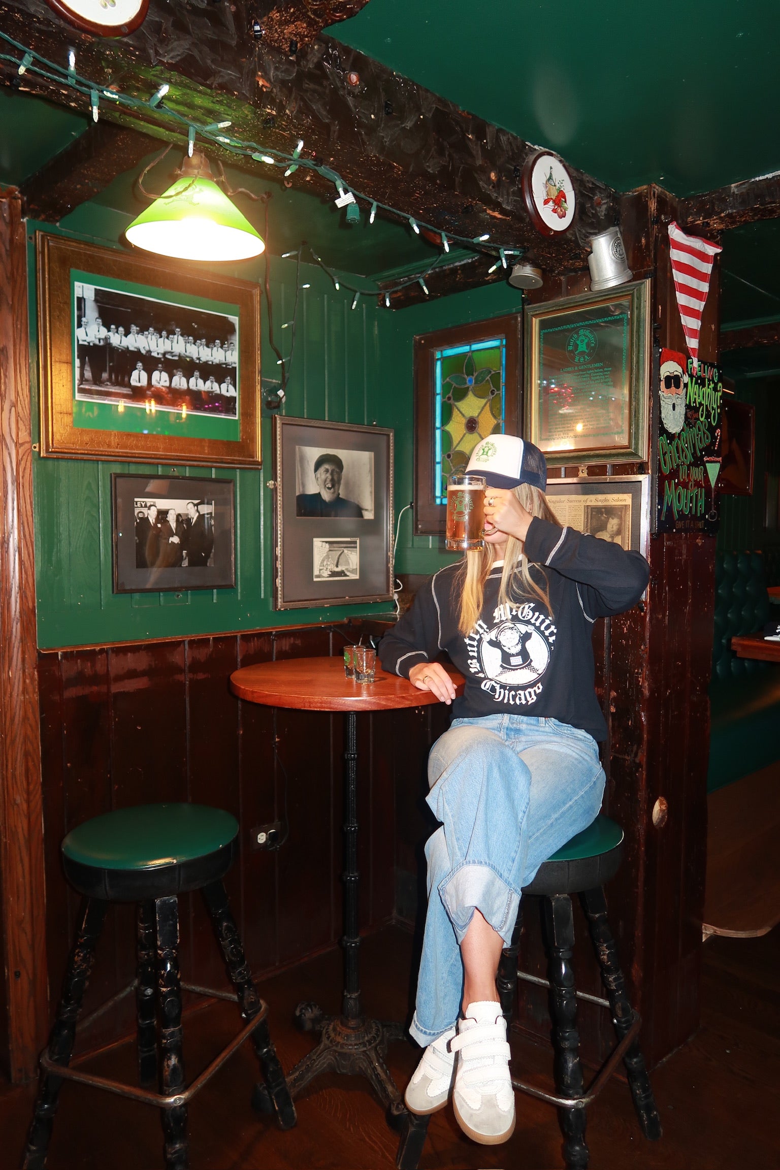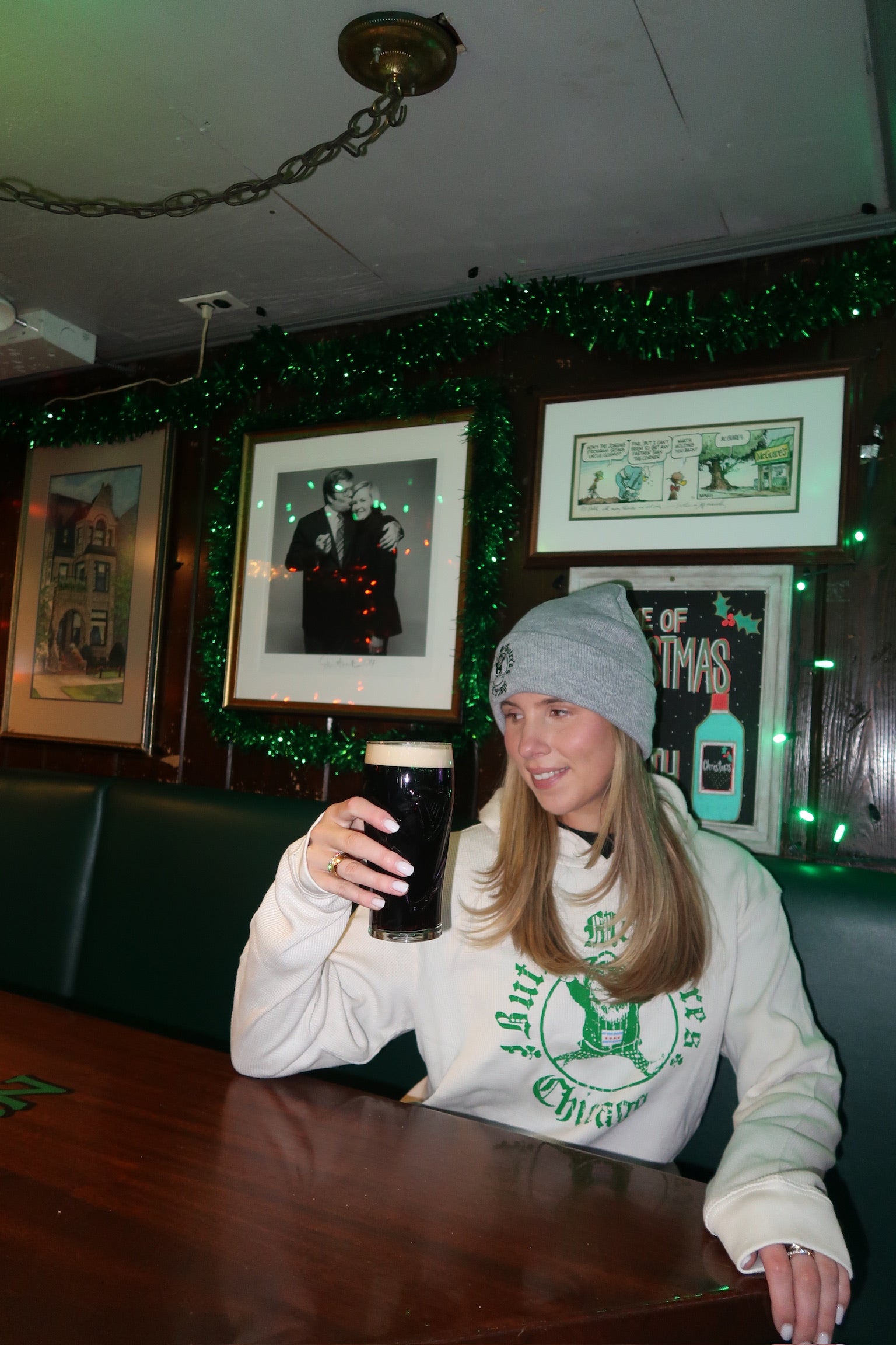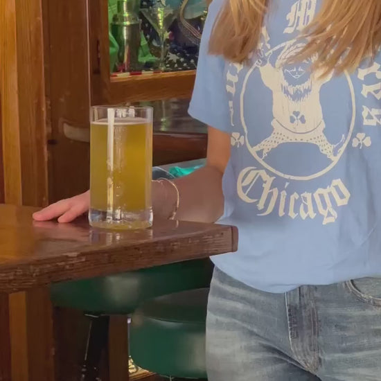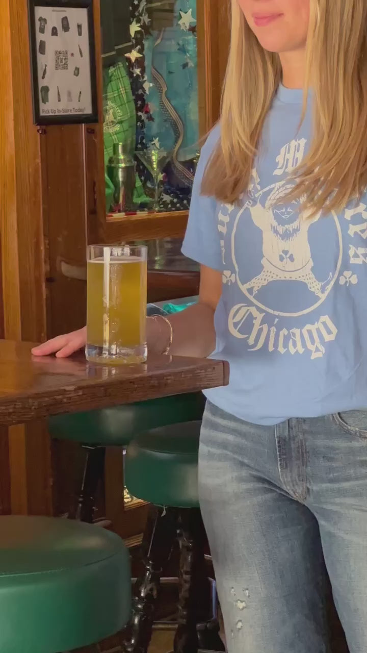 Stay warm and proud with the Butch McGuire's Thermal in a new sand (Blue) finish! This stylish long-sleeve celebrates the legacy of Butch McGuire's, a cherished Chicago tavern since 1961, known for its vibrant spirit and festive traditions. Crafted from a soft, breathable thermal cotton blend, this thermal offers extra warmth with its textured waffle-knit interior, making it perfect for chilly Windy City days. The front features a large white logo showcasing Butch spinning in an industrial dryer—a playful tribute to the tavern’s lively vibe—with his raised fingers symbolizing an order or the number of drinks, paired with "Butch McGuire's Chicago" in a vintage-inspired font. A subtle Chicago flag accent on the sleeve adds a touch of local pride.